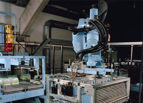 適用化工、建材、飼料、食品、飲料、啤酒、自動化物流等行業,配以不同抓手,可實現在不同行業各種形狀的成品進行裝箱和碼垛。