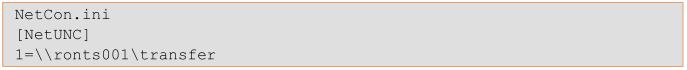 按序打開菜單: 開始 > 網絡 > 編輯 ini 文件 > NetCon.ini 。