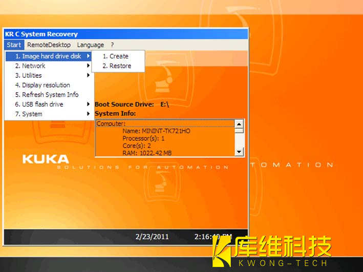 2. 插上具有起動功能的庫卡 U 盤,然后重啟工業機器人控制系統。