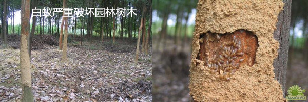 白蟻可以危害甘蔗、花生等農作物,尤其對甘蔗的危害十分嚴重。另外,白蟻對林木、果樹等的危害也具有相當的廣泛性和嚴重性。